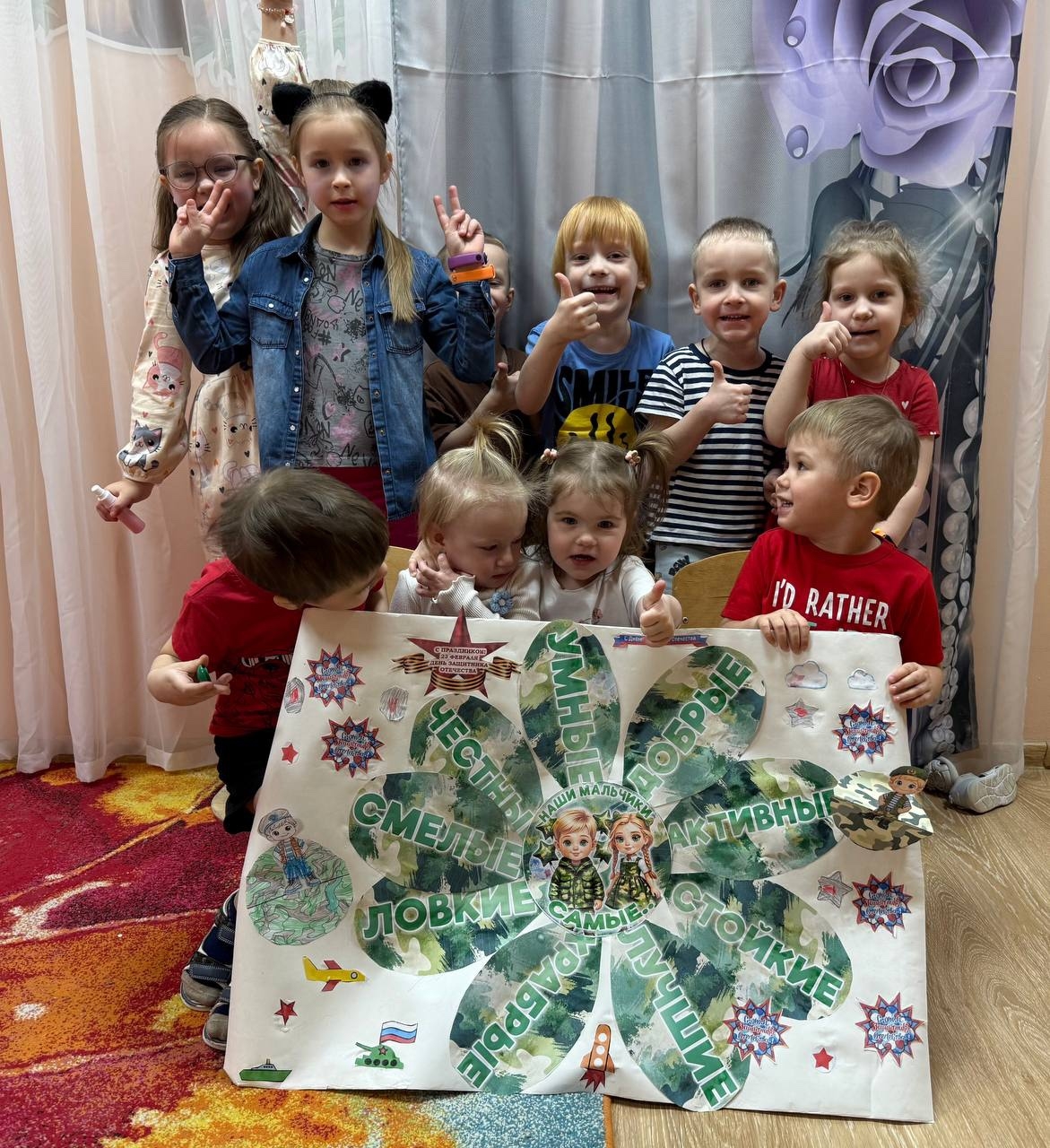 Цель мероприятия, посвящённого 23 февраля (Дню защитника Отечества) в детском саду, — воспитать у детей чувства патриотизма, обогатить знания о Российской Армии, создать праздничное настроение, развить положительные эмоции, чувство взаимопомощи, вызвать желание стать защитниками Отечества, развить физические качества (силу, ловкость, смелость, выносливость).